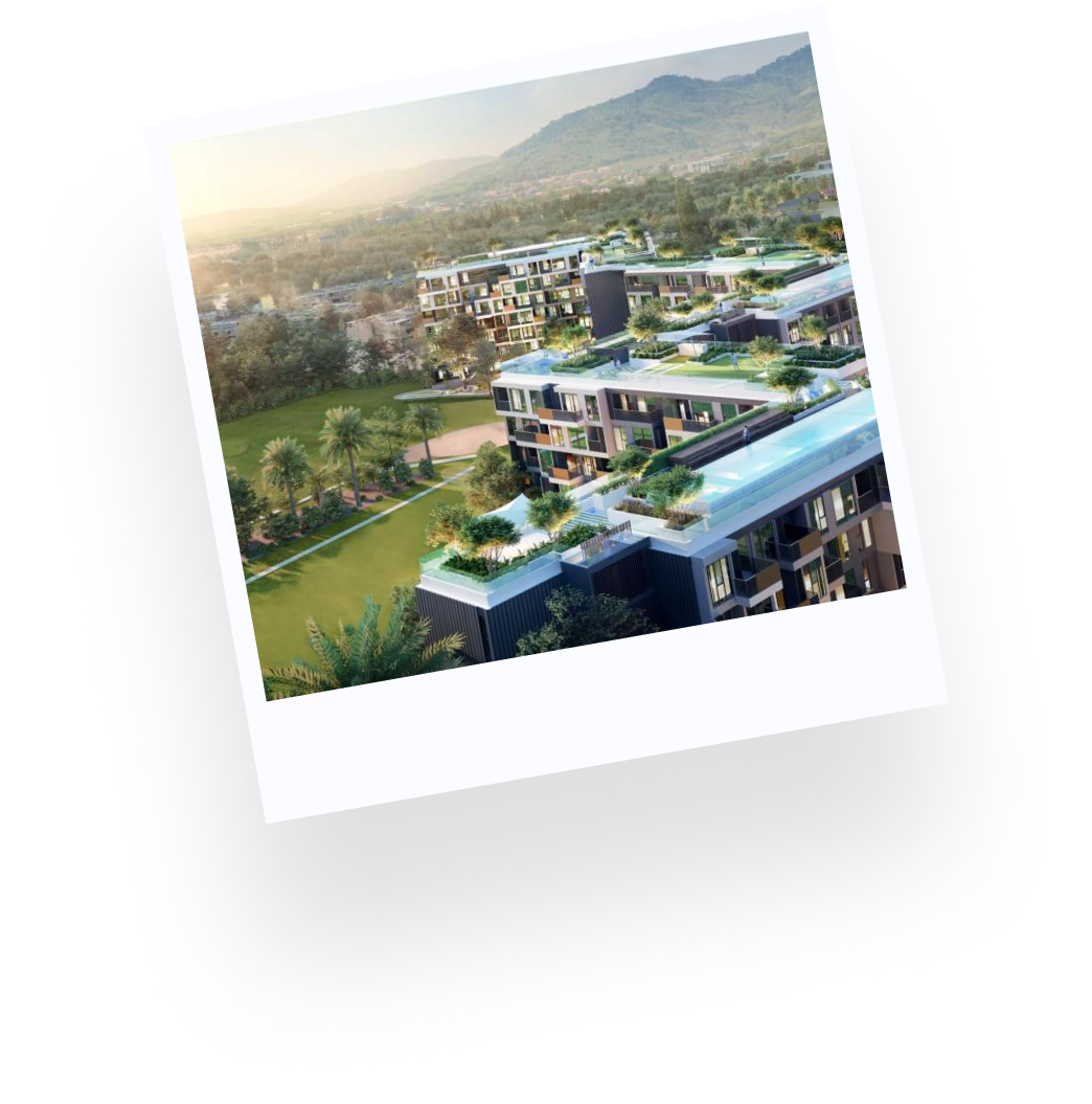 Проект расположен в окружении природного ландшафта с живописным видом на гольф-поля всего в 800 метрах от пляжа Бангтао